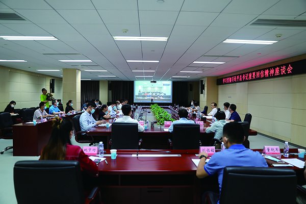 7月9日,中国石油大学(北京)召开学习贯彻习近平总书记重要回信精神座谈会,校本部和校区干部师生视频连线,专题联学习近平总书记给中国石油大学(北京)克拉玛依校区毕业生的重要回信精神。座谈会由党委书记山红红主持。