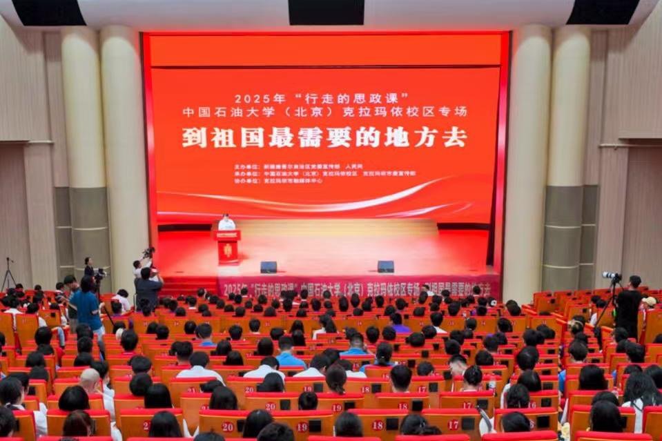 7 月 7 日上午,由新疆维吾尔自治区党委宣传部、人民网主办的“牢记嘱托 感恩奋进——2025 行走的思政课”系列主题活动首场活动在中国石油大学(北京)克拉玛依校区举行,活动以“到祖国最需要的地方去”为主题。
