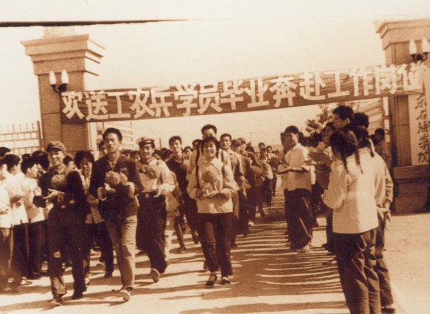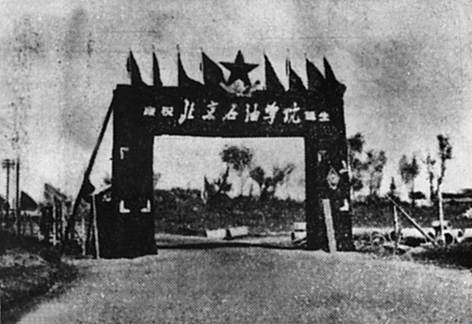 建校初期,条件艰苦,创业艰难,北京石油学院最早的千余名师生员工,在海淀区九间房村半是田野、半是工地的校园里,举行了简朴而隆重的开学典礼。校园西侧简易牌楼上,“北京石油学院”六个大字在秋阳下熠熠生辉。这是教职工们从毛泽东主席已发表的墨迹中逐字精选、拼组而成,尤其“学院”二字,经反复调整方显神韵。
