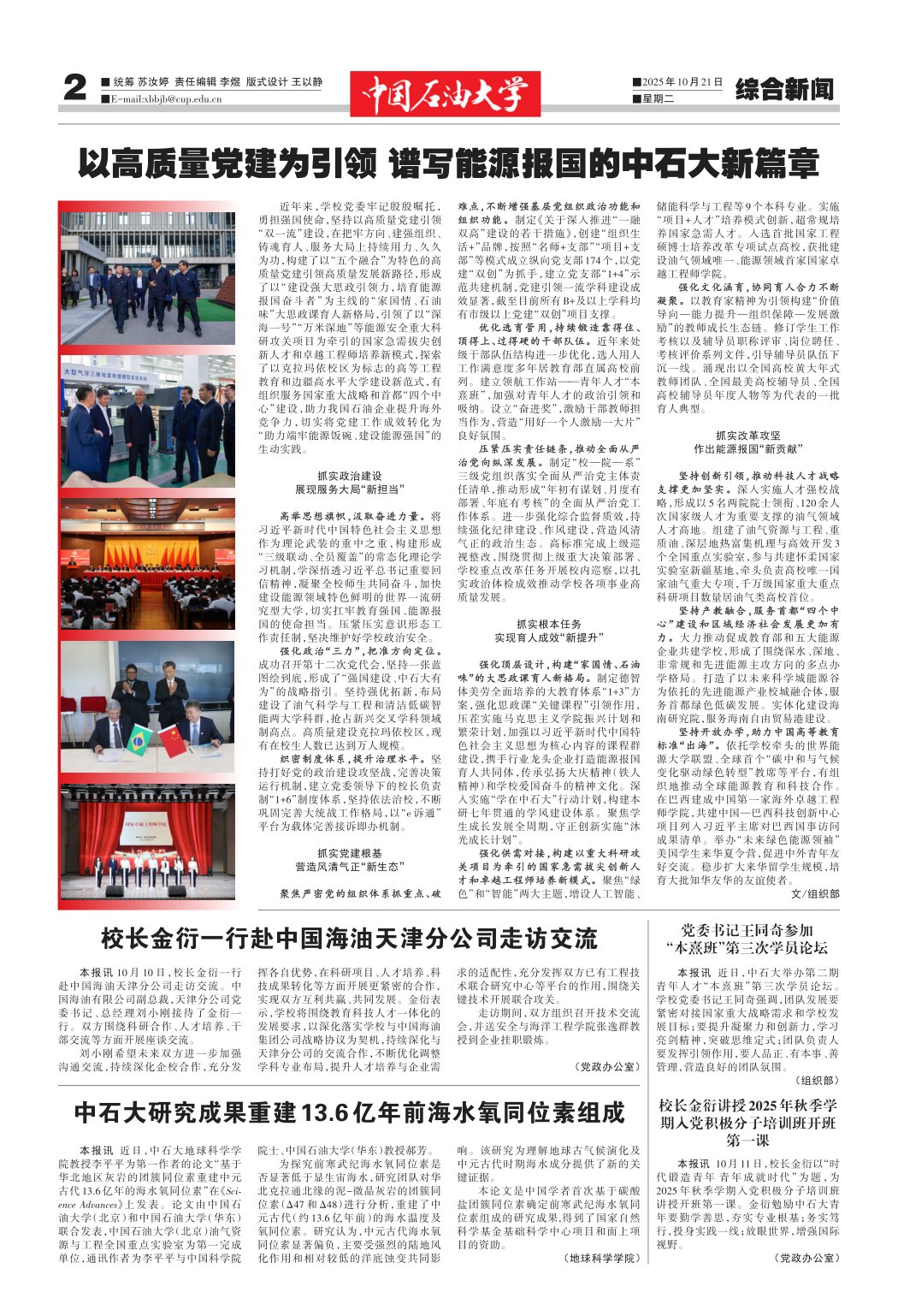 本报讯 10月10日,校长金衍一行赴中国海油天津分公司走访交流。中国海油有限公司副总裁,天津分公司党委书记、总经理刘小刚接待了金衍一行。双方围绕科研合作、人才培养、干部交流等方面开展座谈交流。