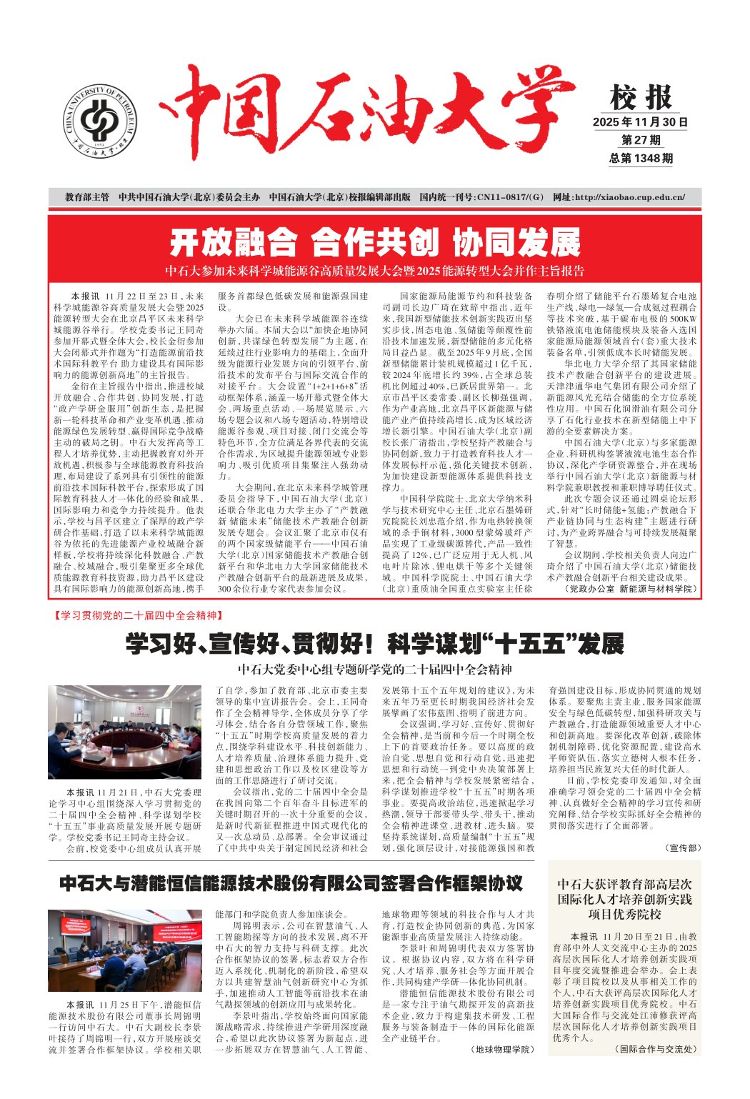 本报讯 11 月 20 日至 21 日,由教育部中外人文交流中心主办的 2025高层次国际化人才培养创新实践项目年度交流暨推进会举办。会上表彰了项目院校以及从事相关工作的个人,中石大获评高层次国际化人才培养创新实践项目优秀院校。中石大国际合作与交流处江沛修获评高层次国际化人才培养创新实践项目优秀个人。