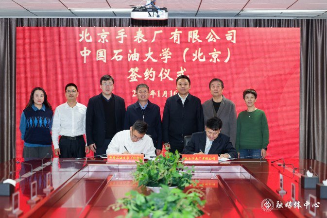 本报讯 1 月 16 日,北京手表厂有限公司与中国石油大学(北京)签约仪式举行。中国石油大学(北京)校长金衍、昌平区副区长崔迪、中国石油大学(北京)党委副书记蒲俊霖、北京手表厂有限公司董事长许学军等参加仪式。