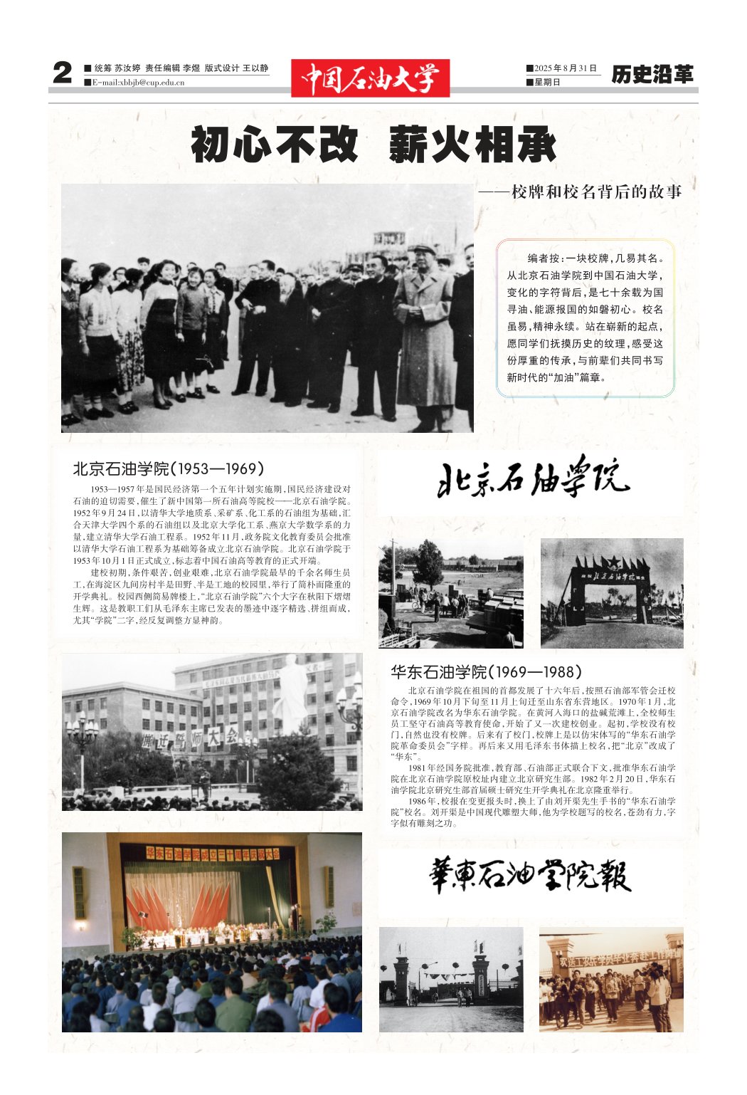编者按:一块校牌,几易其名。从北京石油学院到中国石油大学,变化的字符背后,是七十余载为国寻油、能源报国的如磐初心。校名虽易,精神永续。站在崭新的起点,愿同学们抚摸历史的纹理,感受这份厚重的传承,与前辈